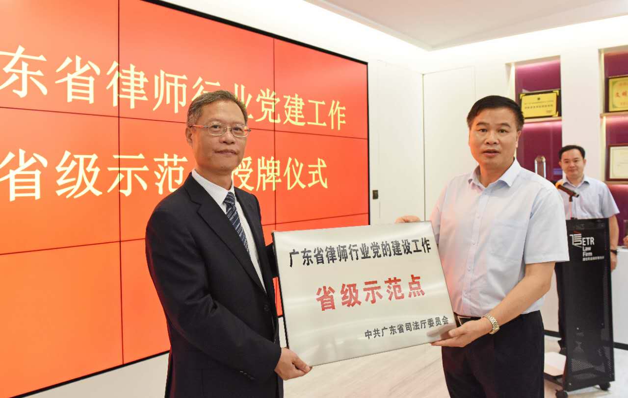 为贯彻落实全面从严治党的要求,进一步推进律师行业党的建设,充分发挥律师行业党组织的政治核心作用和党员的先锋模范作用,根据国家司法部的要求,广东省司法厅按照选树示范点严格的标准和程序,在全省范围的律师行业内选树了一批党建工作省级示范点,广东广信君达律师事务所、广东宝城律师事务所以及广东天行健律师事务所被授予省级示范点。