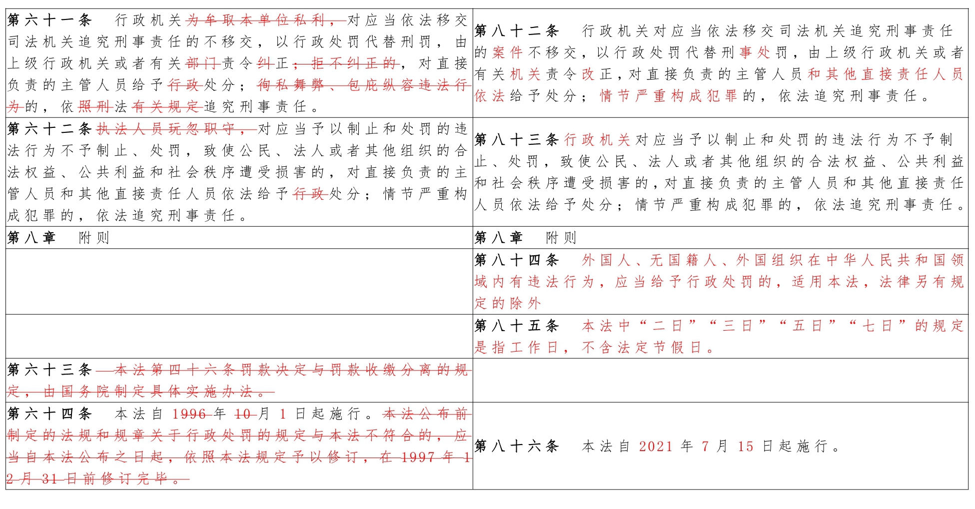 2021年1月22日,《行政处罚法》由第十三届全国人民代表大会常务委员会第二十五次会议修订通过,将于2021年7月15日起施行。新《行政处罚法》亮点纷程:强调文明执法,首次明确行政处罚的概念,增设行政处罚的种类,扩大行政处罚的设定权限,相对集中执法和下放行政处罚权,细化行刑衔接制度,修改和完善“一事不再罚”原则和时效制度,引入执法三项制度,调整和完善行政处罚程序,强化对行政处罚权的监督和制约等。